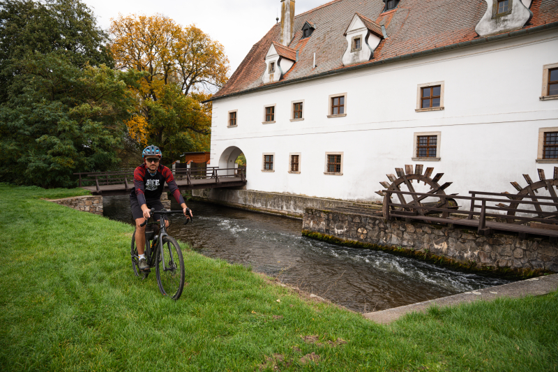 Foto: Radfahren an der Mühle in Šlakhamr, M. Eich