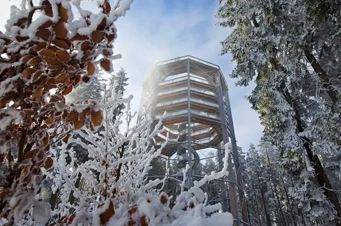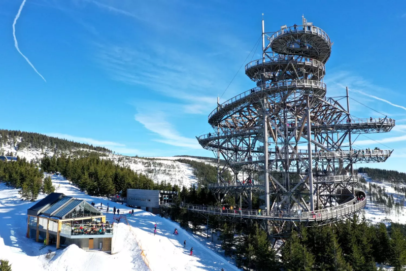 Lipno ist ein Top-Ziel für Familien, die neben dem Skifahren auch andere Aktivitäten entdecken möchten. Besonders empfehlenswert ist der Baumwipfelpfad, ein Wanderweg hoch in den Bäumen, von dem Sie an klaren Tagen sogar die Alpen sehen können. Kostenlose Parkplätze gibt es am zentralen Park des Skiareals Lipno, von wo aus Sie den Weg zu Fuß oder mit dem Stezkabus erreichen.